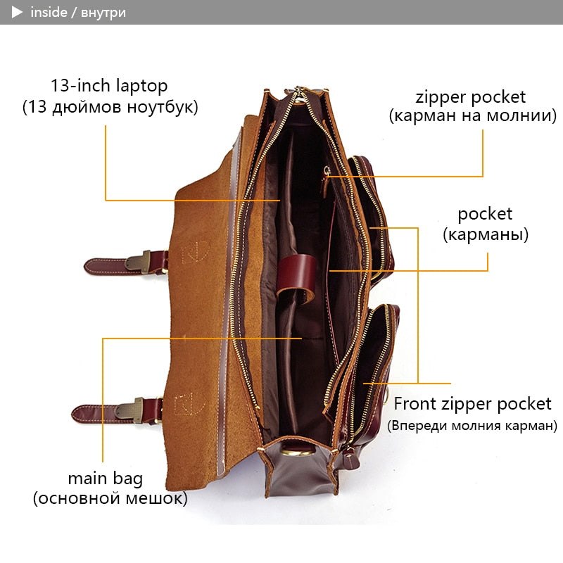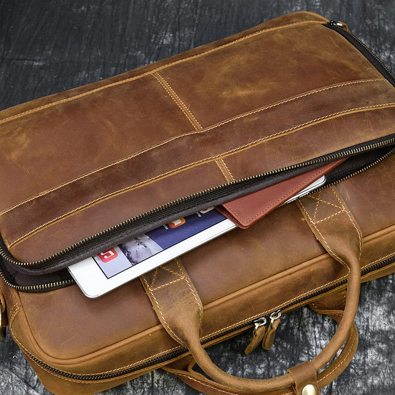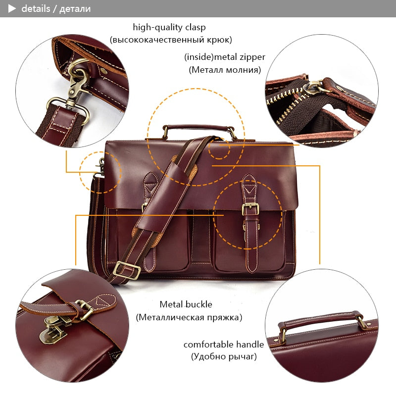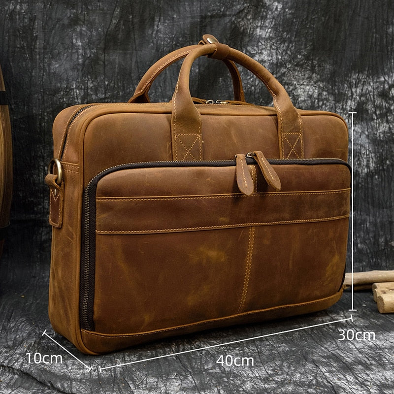 Bellabydesignllc – Men’s Genuine Leather Briefcase Bag 16″ Laptop Thick Cowhide Business Bag is a stylish, classic dress-style briefcase that will help you keep everything in its place. This bag features one shoulder strap and an exterior compartment for valuables. Made with genuine leather, it has enough space to hold not just your files but also any other essentials you need to carry with you throughout the day. It also includes interior compartments for your computer and personal items as well as pen holders to eliminate the risk of losing those important work tools while on the go.