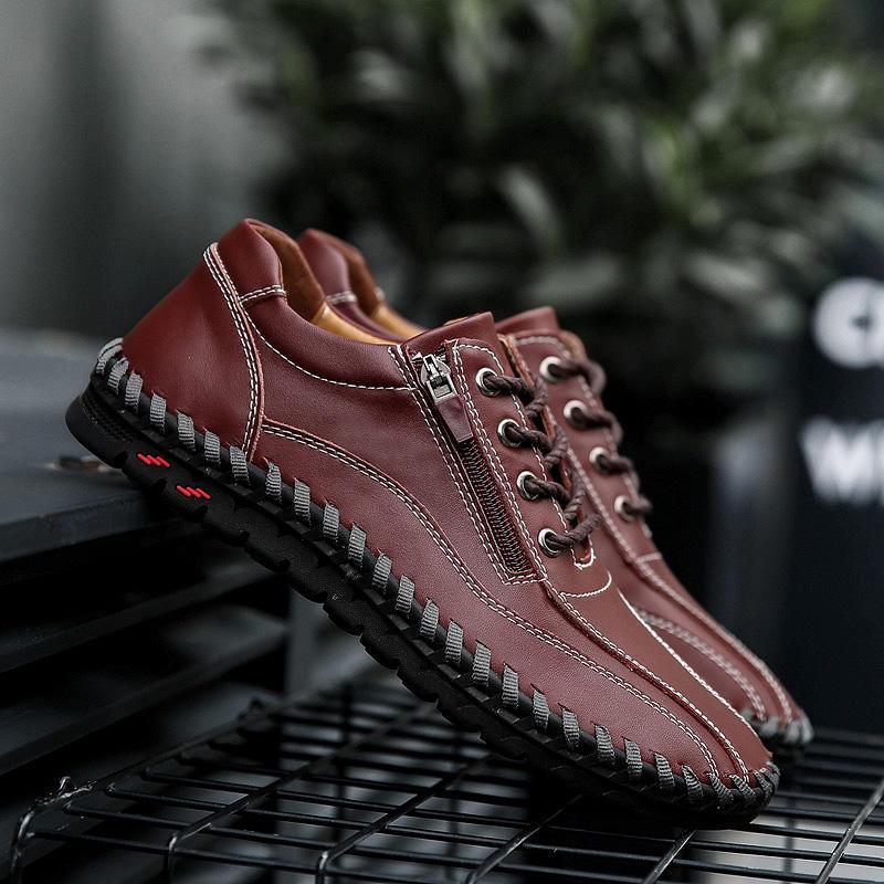 Mens men large men hand sewing side zipper casual leather shoes - onlinemegasale.com