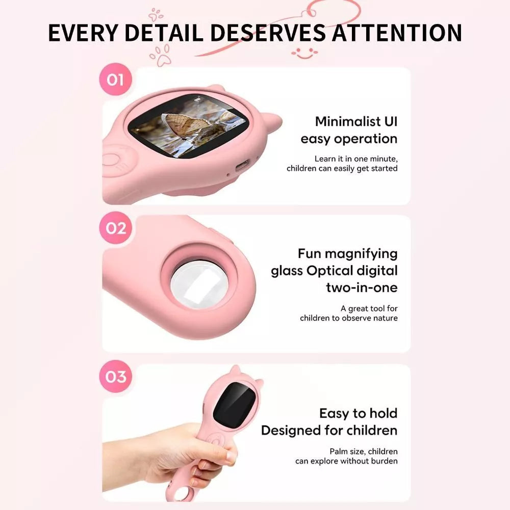 To use, simply power on the microscope, adjust the zoom and focus using the intuitive controls, and explore your subject with stunning clarity. Switch between digital and physical lenses for varied experiences, and save your findings as photos or videos for future exploration. Whether observing plants, fabrics, or tiny creatures, this pocket microscope is simple and fun to operate.