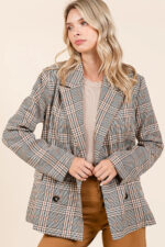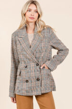 The Plaid Double Breasted Relaxed Fit Blazer is a sophisticated and versatile piece for your wardrobe. With a classic plaid pattern, this blazer exudes a timeless and polished look. The double-breasted design adds a touch of elegance and structure to the silhouette. The relaxed fit offers comfort while still maintaining a professional and stylish appearance. Pair it with dress pants or jeans for a chic and tailored ensemble suitable for various occasions.