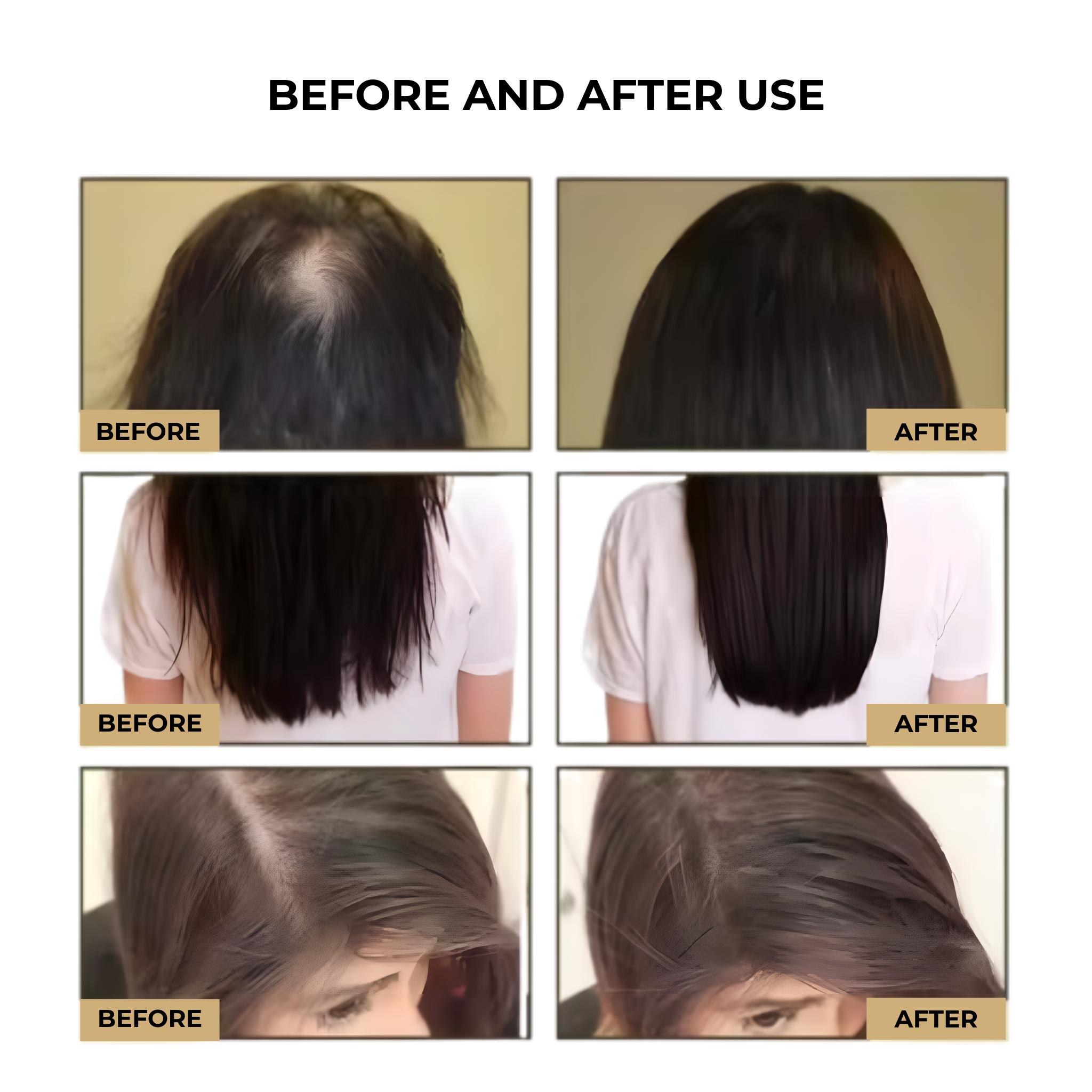 2.) Take an appropriate amount of essential oil on the scalp, gently massage the scalp with fingertips to assist absorption, press for 1–2 minutes until absorbed, no need to rinse again.