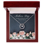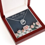 Our Mother’s Roses Necklace arrives in a luxurious display case featuring delicate rose blooms and the touching sentiment “A mother understands what a child does not say.”