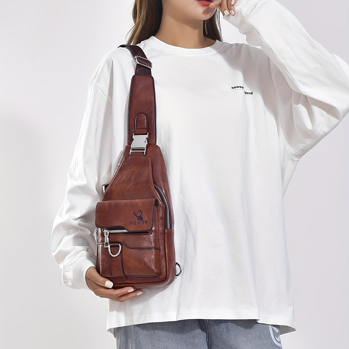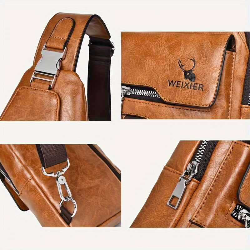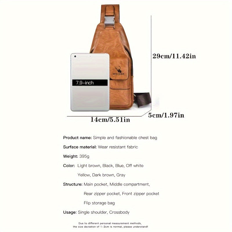 Men’s New PU Leather Vintage Casual Simple Chest Bag, Crossbody Large Capacity Multi-compartment Waterproof Premium Men’s Crossbody Bag for Carrying Out.