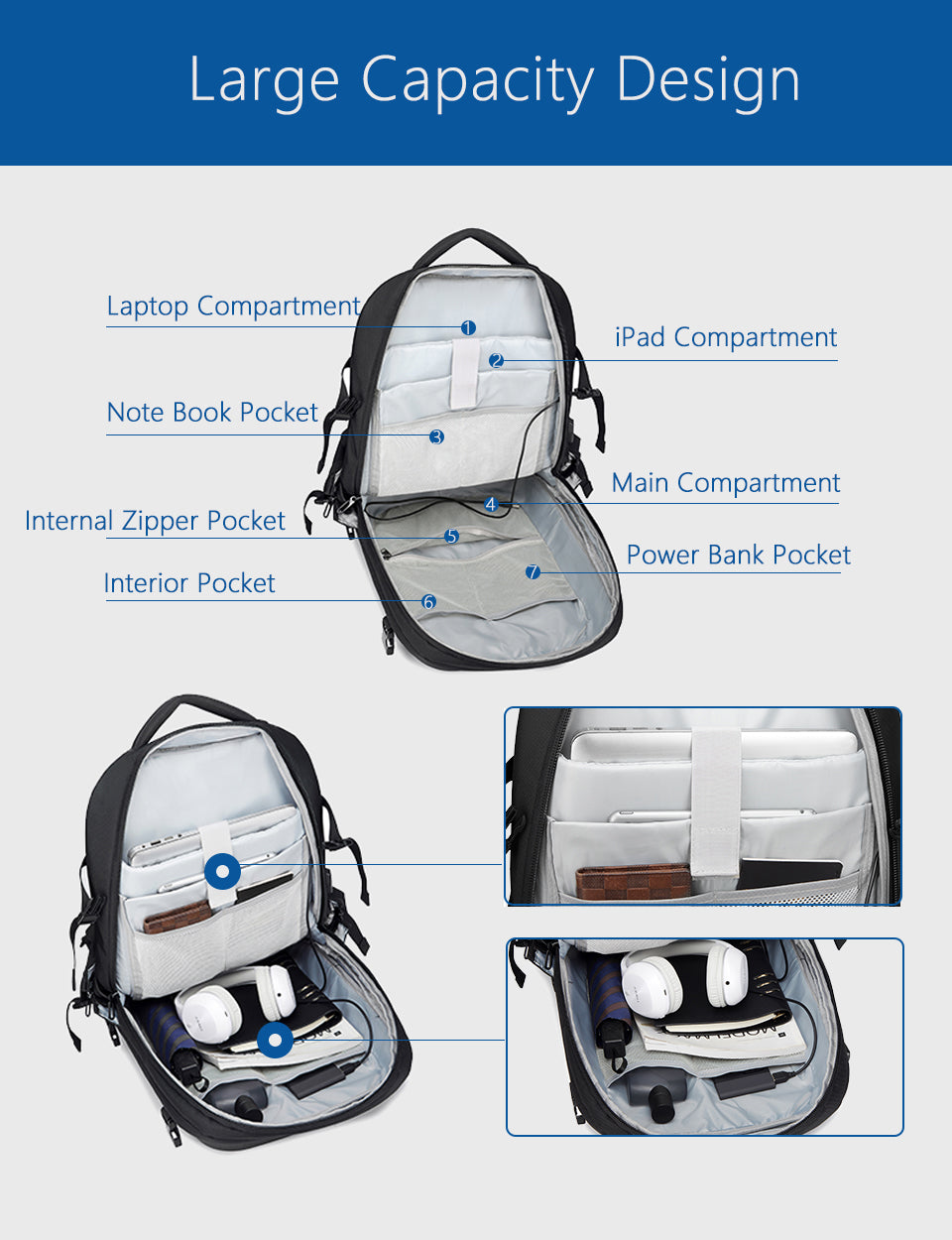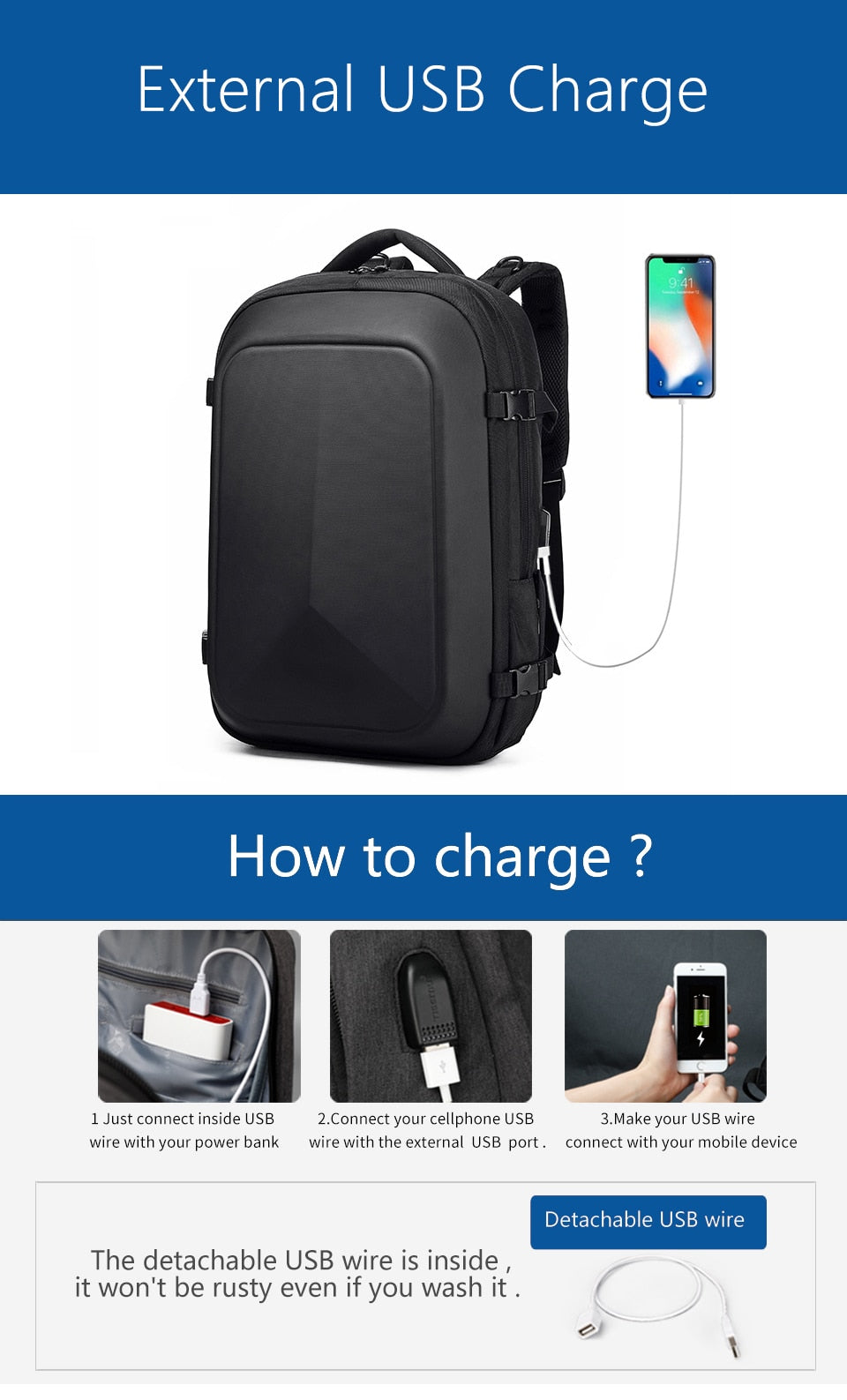 Pattern Type: Solid – Features: Large Capacity, Big, Waterproof, Water Repellent, USB Charging Backpack
