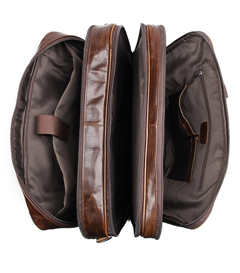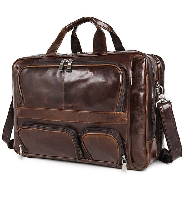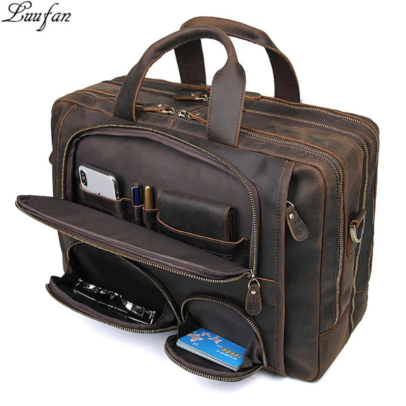 Multifunction Crazy horse Genuine Leather Men Briefcase 17″ Laptop business Bag