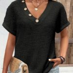 From casual outings to office wear, the Nakia™ top is your go-to for a stylish, comfortable look. The combination of button details, a V-neckline, and soft fabric ensures you stay on-trend and comfortable. With Nakia™, you’ll embrace effortless elegance for any occasion