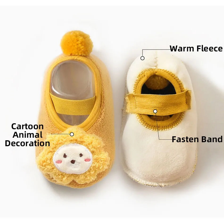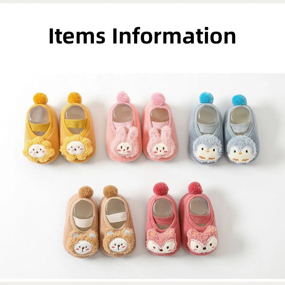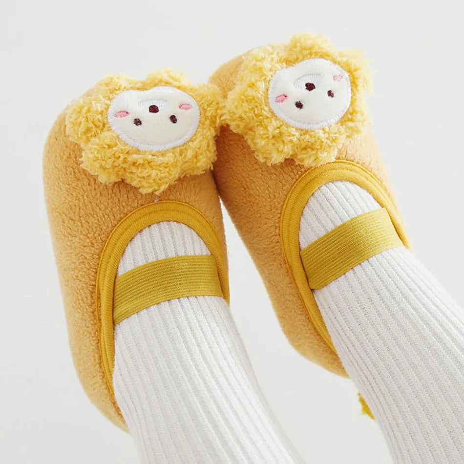 Newborn Crib Shoes: Baby Cartoon Bunny, Lion, Fox Slip-On Warm Cozy Floor Socks