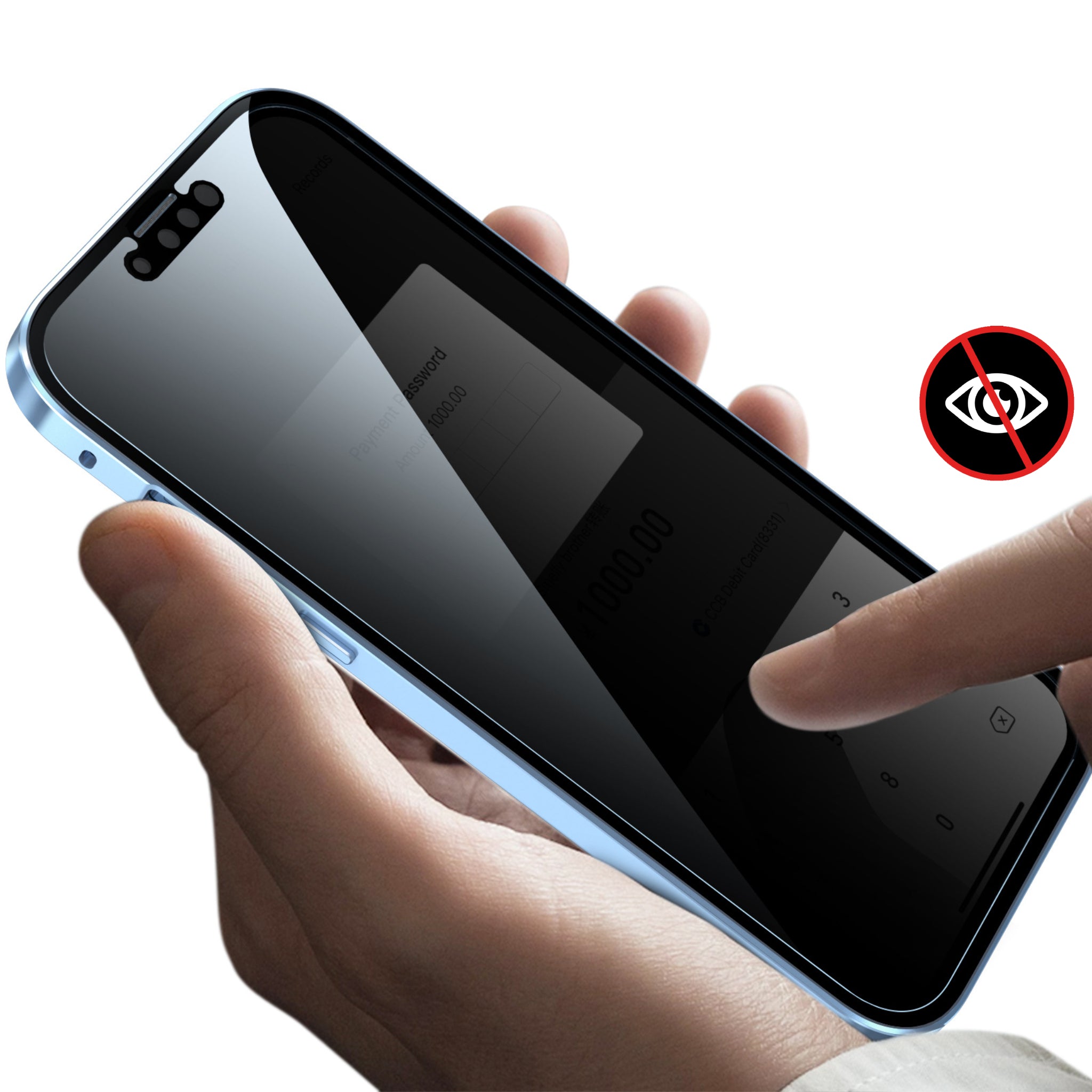 The Nospy™ privacy phone case is equipped with cutting-edge tempered glass that turns your phone screen black for anyone viewing it from an angle greater or less than 90°.