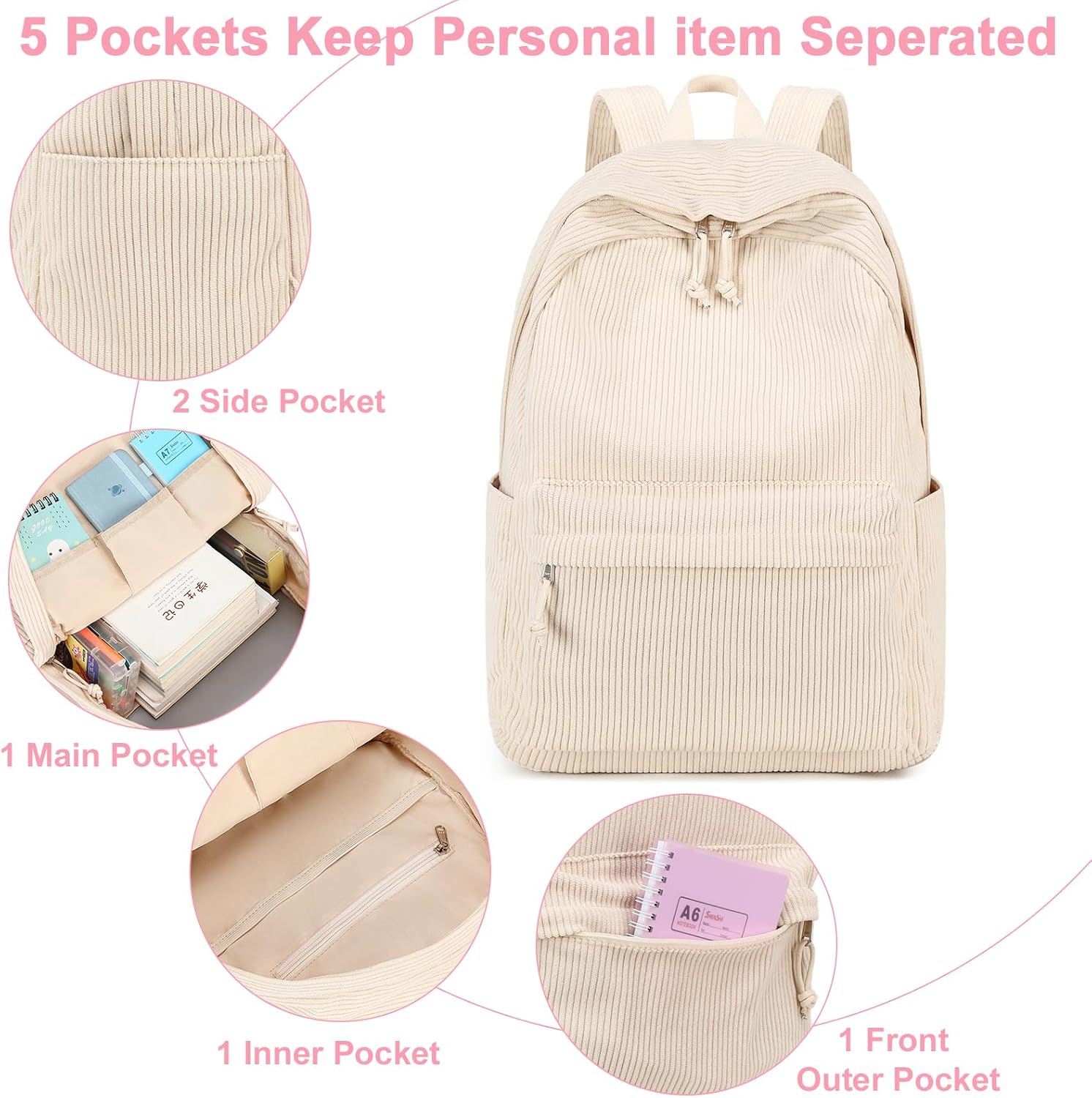 NOVUXY Elementary Corduroy Laptop Bags Women Travel Daypacks School Backpack