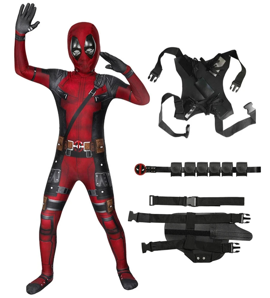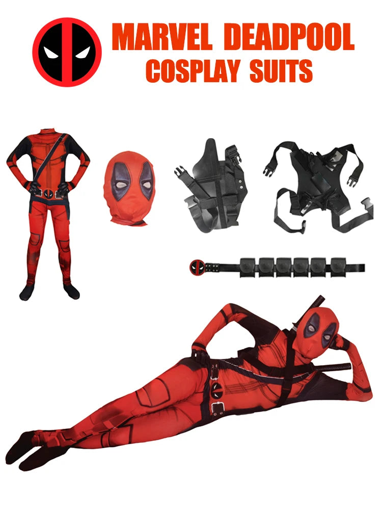 Official Children and Adult Deadpool Cosplay Costume with Mask and full Accessories