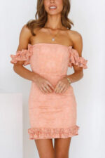 Be the first to review “Chic Off-The-Shoulder Mini Bodycon Dress with Ruffle Lace”