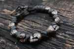 One of the most nightmarish and haunting symbols throughout history has been the human skull. It’s sometimes frightening, sometimes a warning, and sometimes a friendly reminder that eventually death claims us all. This simple yet masterfully designed bracelet features skull inspired by pirates, treasure, and warnings on ancient maps. It’s definitely a statement, a conversation piece, and is great for a variety of looks and styles.