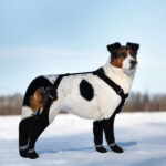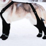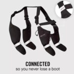- Adjust the suspenders and buckle to secure the boots snugly around your dog’s legs.