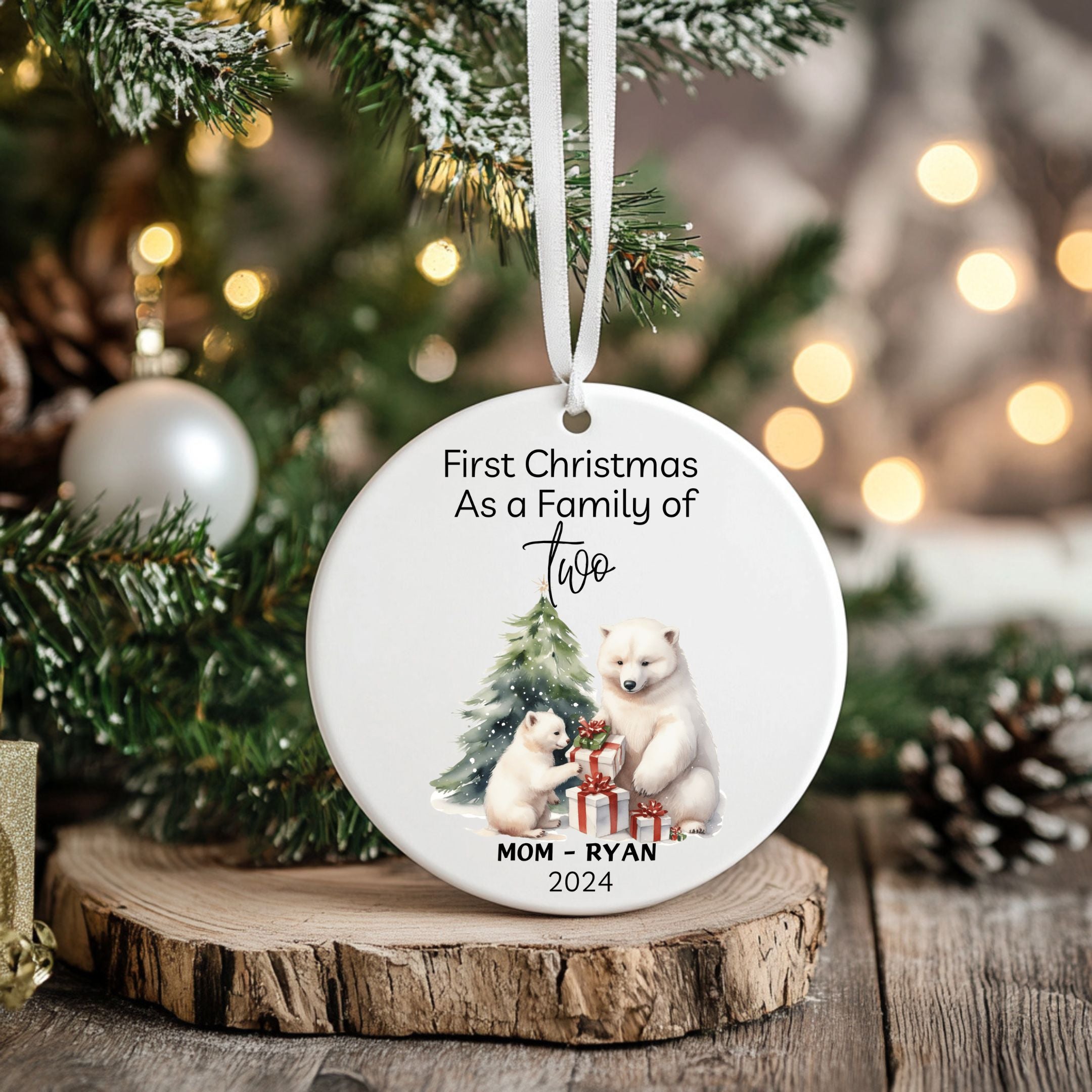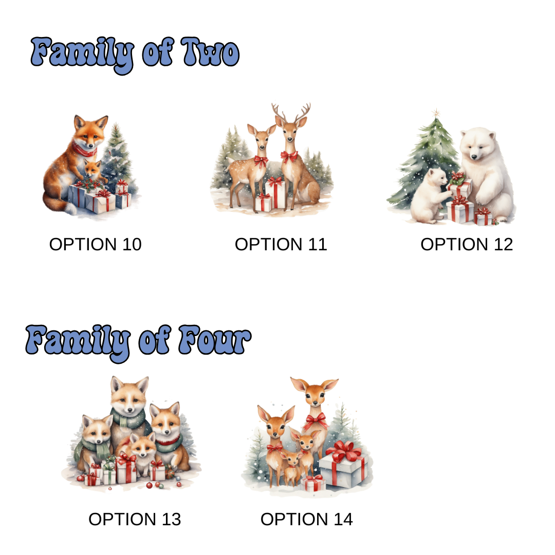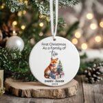 Celebrate your first Christmas together with our charming Personalized Family Ornament! This beautifully crafted ceramic ornament features adorable illustrations of animal families, like polar bears or foxes, nestled under a festive Christmas tree with holiday presents. Customize it with your family members’ names (up to 4 members) and the year to create a meaningful keepsake that captures the joy of your holiday season together.