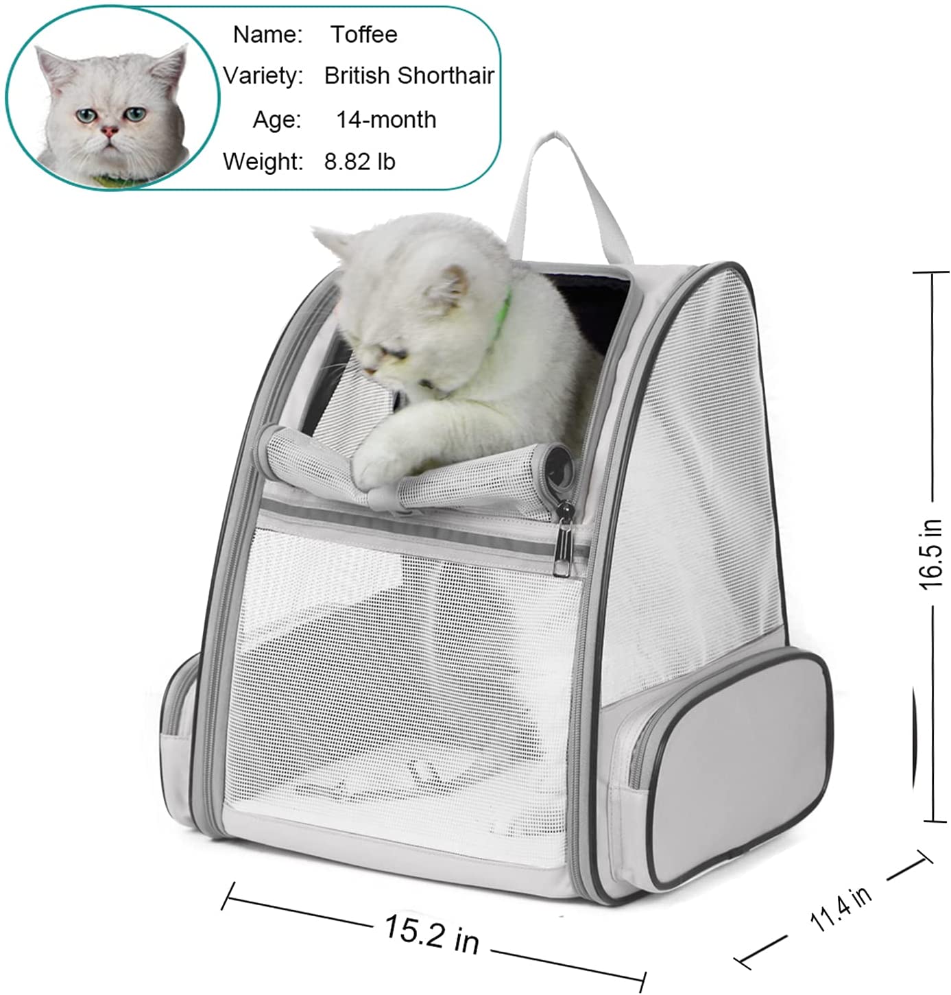 - Pet Backpack Dimensions:13″ L x 11.42″ W x 16.73″ H. Perfect for dogs up to 15-pounds, or cats up to 18-pounds. Easily fits cats, small dogs, and most other small/medium-sized pets! Please measure your pet before purchasing – LENGTH: neck to base of tail; HEIGHT: floor to top of shoulder.