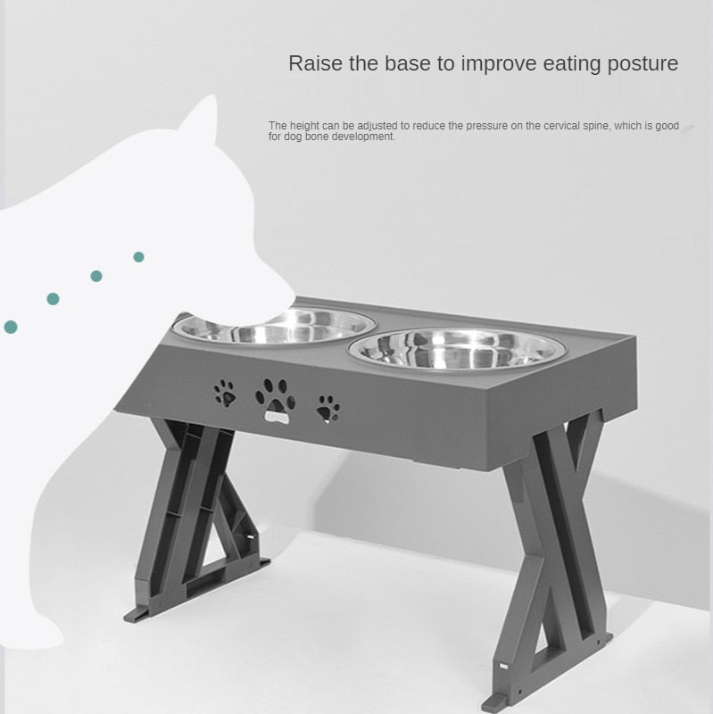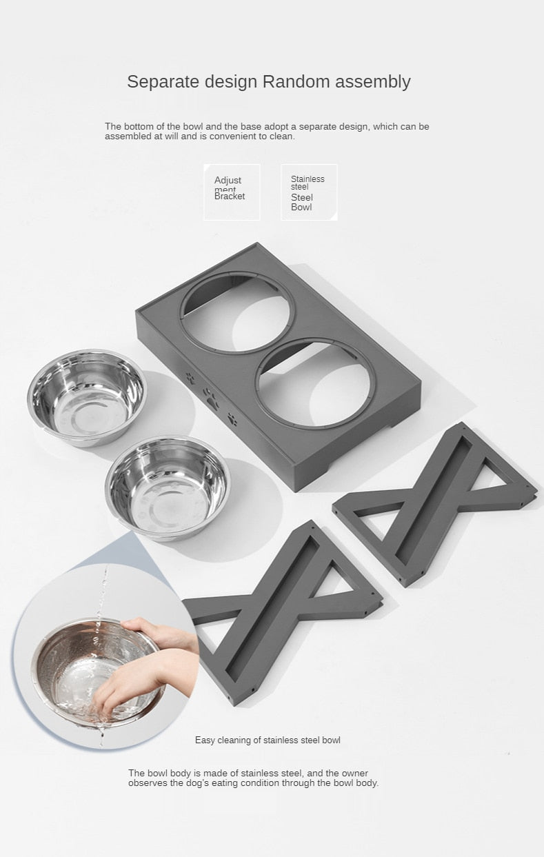 Adjustable Double Non-Slip Pet Food Bowl Feeding Dish
