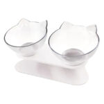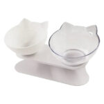 The shallow depth and angle of the cat bowl make it easier for cats to get food, prevent beard fatigue and keep the face clean. Place the dog bowl at a height suitable for the dog so that it can maintain the correct standing posture. When the head is held above the stomach, food will spread more efficiently along the digestive tract. Raise the cat feeder’s base and tilt 15 degrees to provide a comfortable feeding angle and reduce the cervical spine compression caused by excessive overhead of the head when the cat eats too much. Cat double bowls are designed for simultaneous feeding and drinking water; the transparent bowl is designed for direct monitoring of cats ’eating and drinking conditions. The cat double feeder is unique, stylish and simple, and the special design is also a good home decoration for pet owners.