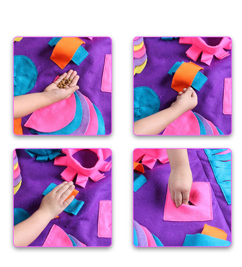 SnuffleDogMat has a variety of different hiding places for the dog’s food. So your four-legged friend can completely live out and train his nose with the various hiding places. The food mat is made of high-quality materials that are very durable and above all 100% safe for your pet. Watch your dog and be happy together when he has found the hiding place.