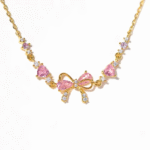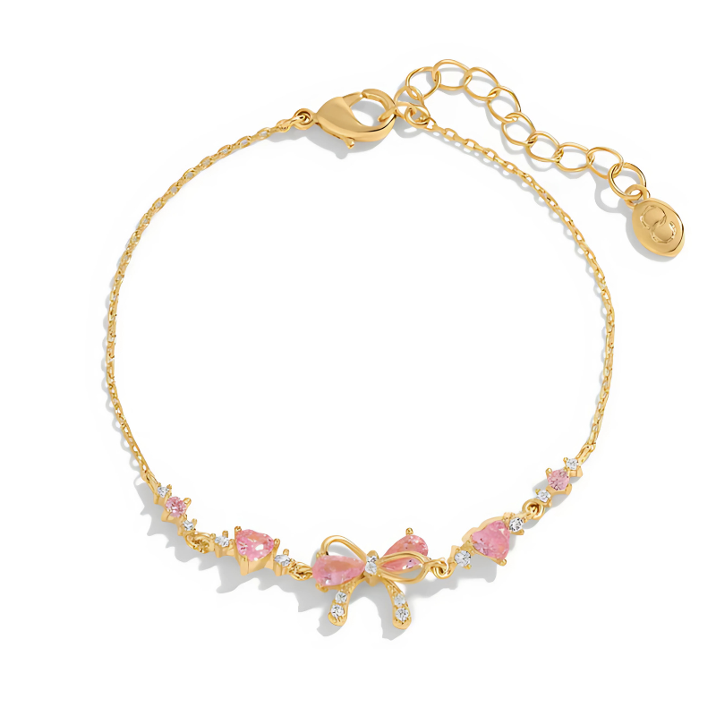 This dainty bow bracelet combines pink crystals and golden warmth to create pure magic.