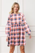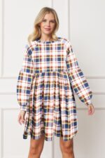๐ Elegant Design: This dress showcases a striking plaid contrast paired with sophisticated long puff sleeves, ensuring you turn heads everywhere you go.