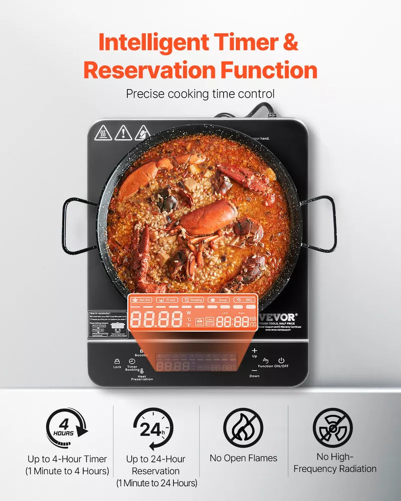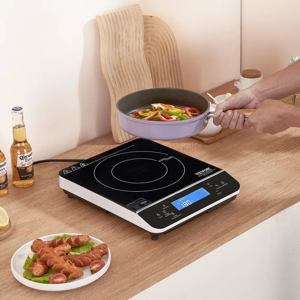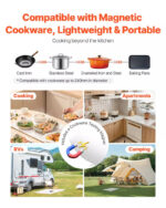 This induction cooktop offers 20 power and temperature settings, allowing you to select the perfect cooking conditions for every meal. Equipped with a digital LCD screen and a touch control panel, it makes adjusting settings a breeze. The non-stick glass surface ensures simple cleaning, while its compact design makes it portable and easy to store. Safety features like auto-pan detection, overheat protection, and a child lock make it a worry-free option for households with kids. Whether you’re boiling, frying, or simmering, you can count on this cooktop for precise and efficient cooking.