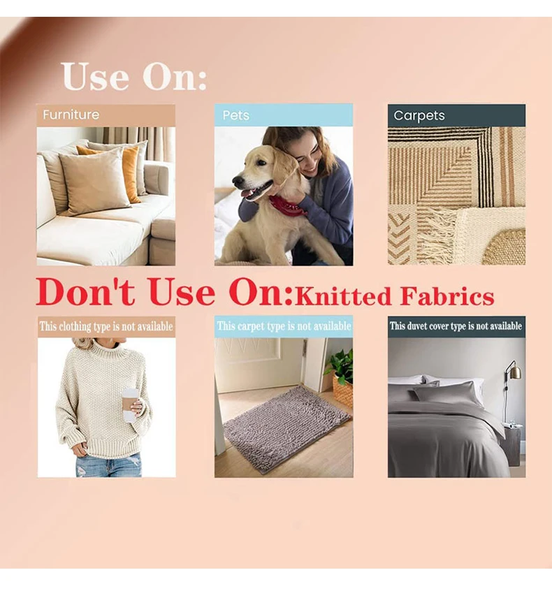 • Usage Instructions – Spread the clothing flat on the table and gently scrape Lint brush at 45-degree angle until they are clean. Not recommended for low-density clothing such as sweaters, knitwear, and cashmere.