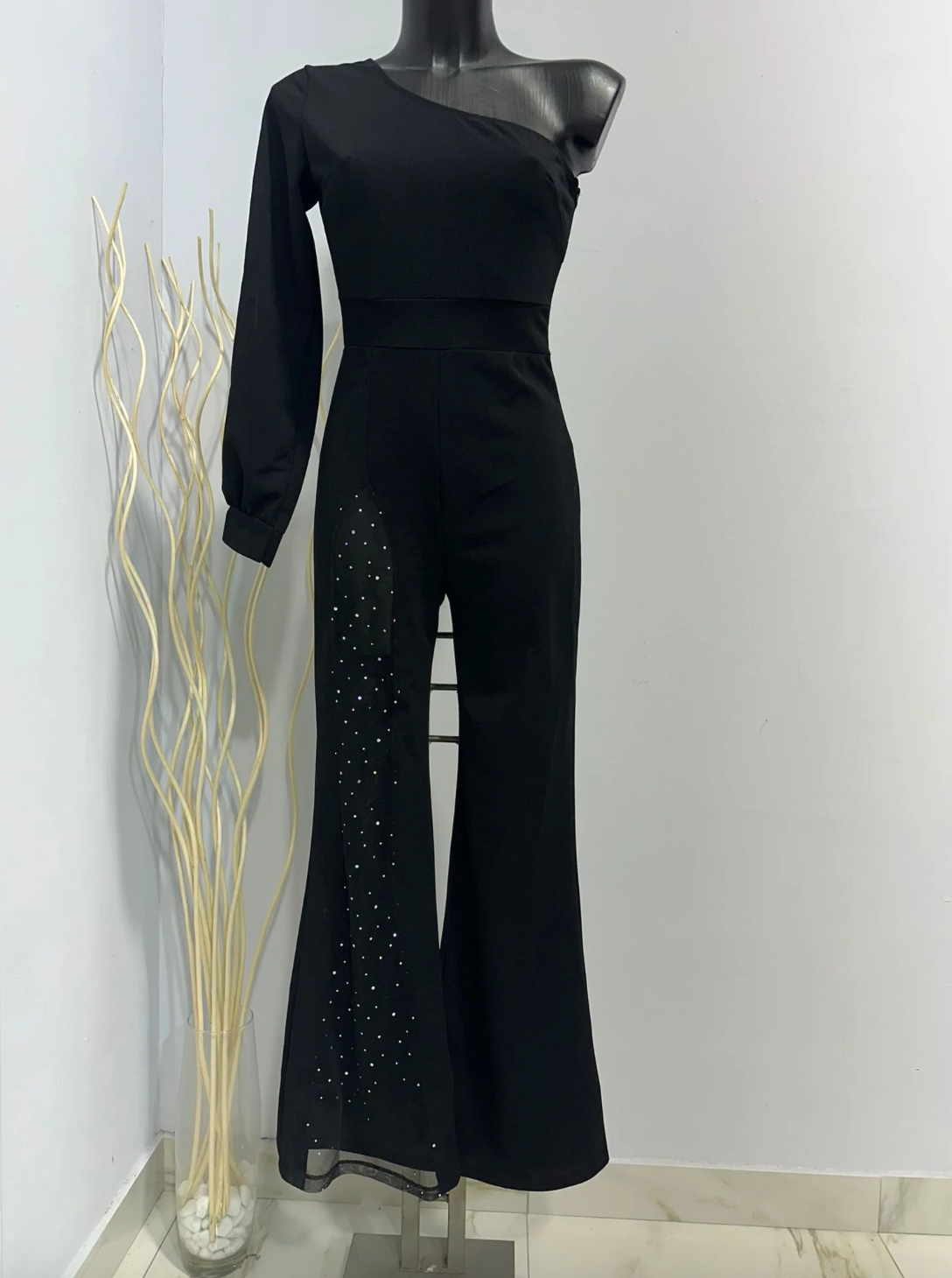 Step into the spotlight with Quinn™, the ultimate statement jumpsuit that exudes sophistication and confidence. Designed with a one-shoulder silhouette and a sheer, shimmering panel, this piece creates a striking contrast of elegance and allure, making it perfect for galas, evening events, and high-fashion moments.