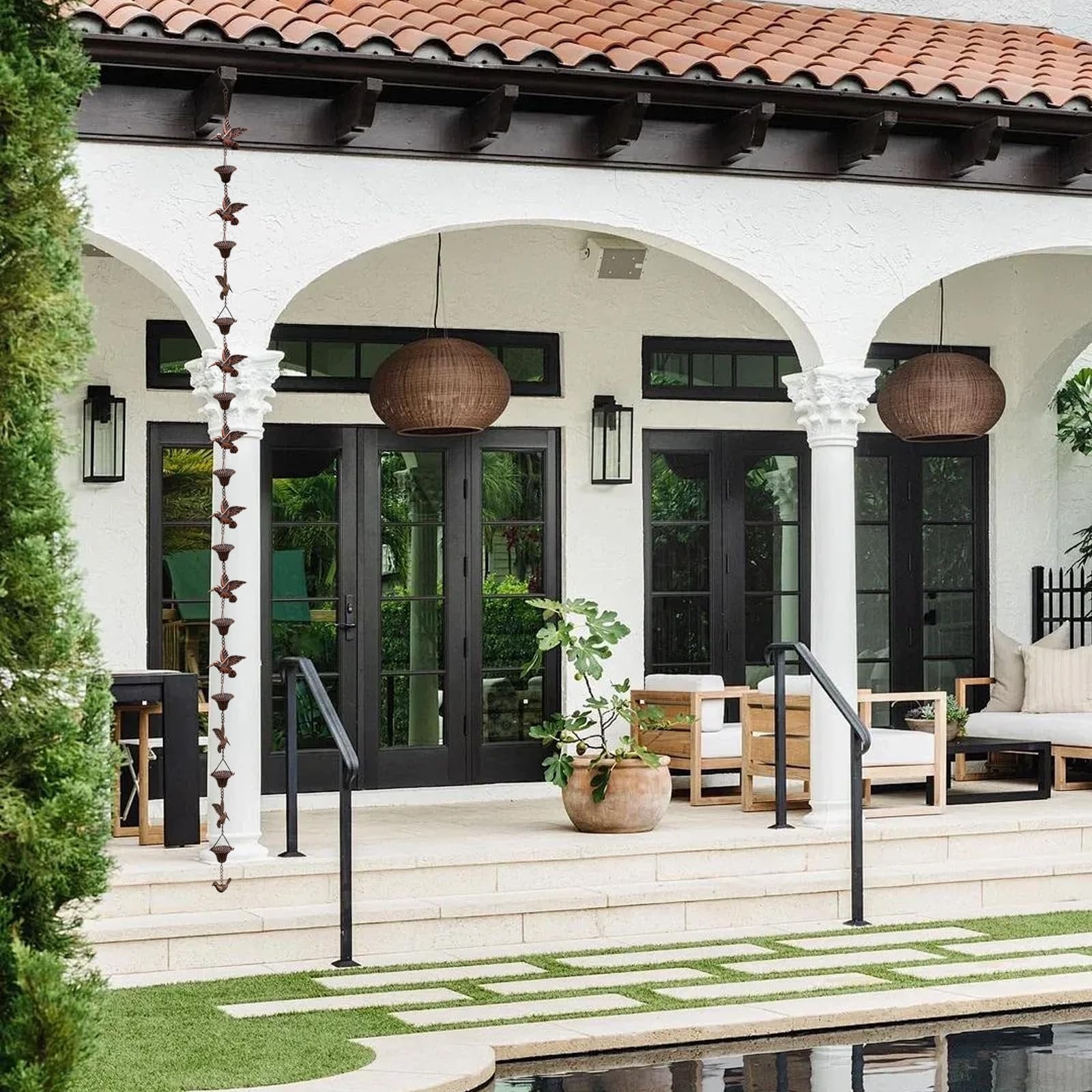 🕊️ PERFECT GIFT – The outdoor rain chain is suitable for standard single-story houses and is also a very exquisite decoration for your garden, courtyard, villa, patio, etc. This would make a great gift for yourself or friends and family at a housewarming party, birthday or holiday.