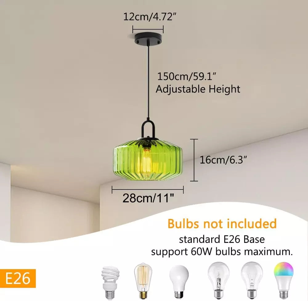 Simply install the Retro Glass Pendant Light using the provided wiring and attach it securely to the ceiling. Use an E27 bulb of your choice (dimmable or standard, depending on your needs) to customize the brightness and ambiance of the room. Adjust the wire length to suit your preferred height, ensuring it fits perfectly with your space. Regularly dust the glass shade with a soft, dry cloth to maintain its shine and brilliance.