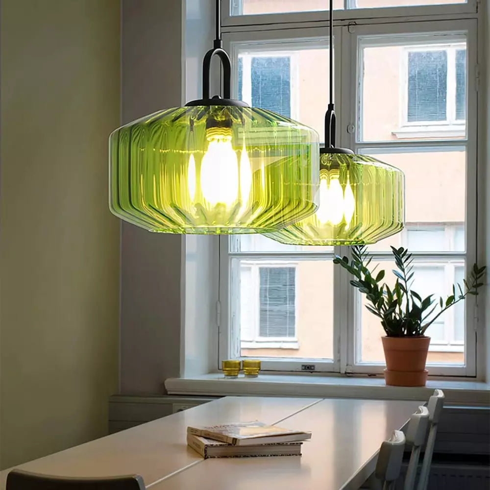 Crafted with a sleek striped glass shade, the Retro Glass Pendant Light delivers a soft, ambient glow that transforms your living room, kitchen, or dining area into a cozy retreat. Its versatile design complements both contemporary and traditional aesthetics, making it a must-have for anyone seeking high-end style without the hefty price tag. Ideal for creating an inviting atmosphere, this pendant light is as functional as it is beautiful.