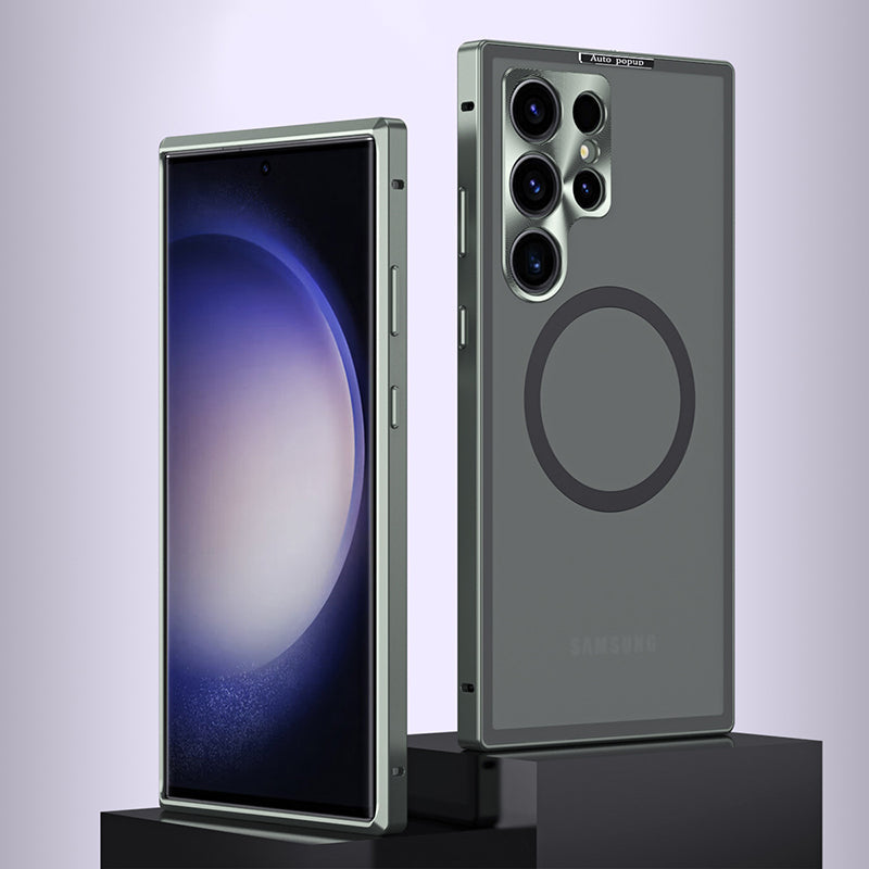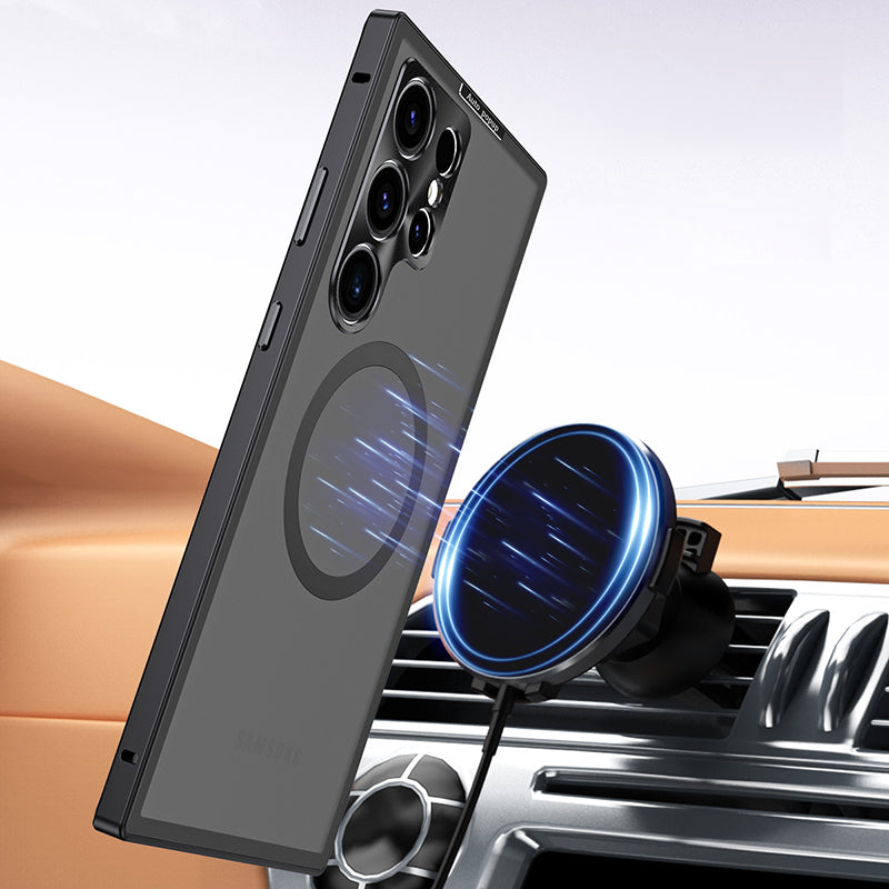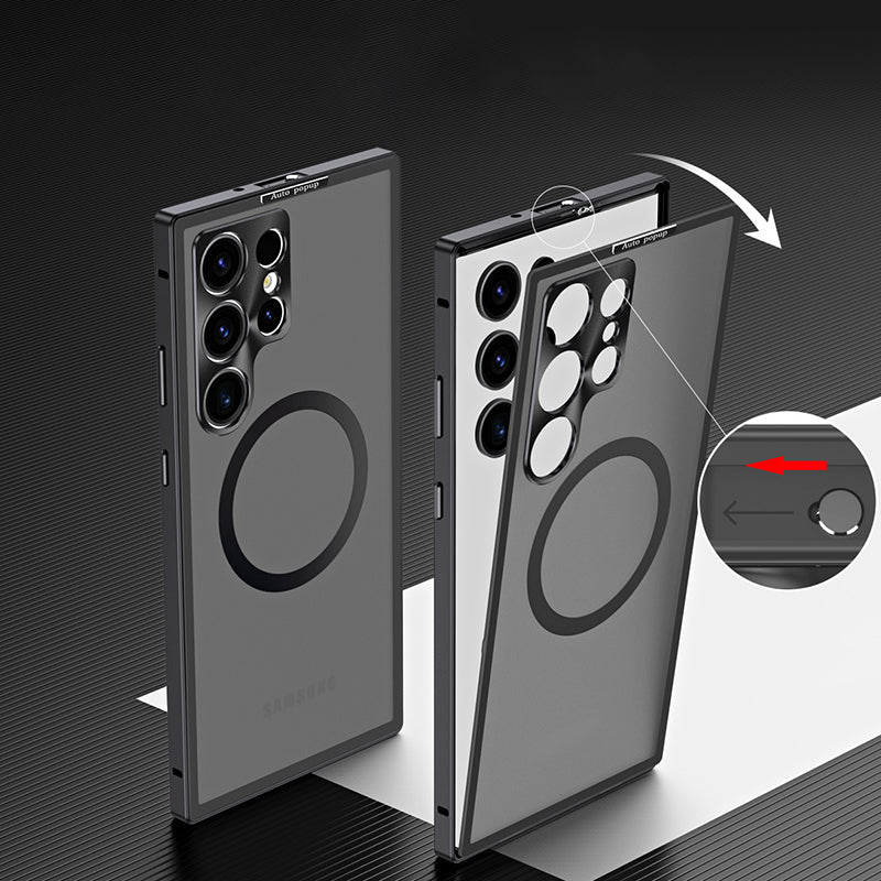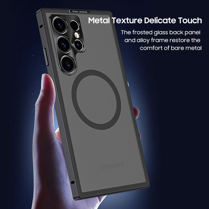 Breaking through the traditional mobile phone case design, double metal frame magnetic + frosted glass installation combination. Aluminum alloy material has stronger impact resistance and can resist 75% of impact force. And there is a special signal hole design, so you don’t have to worry about the signal being affected.