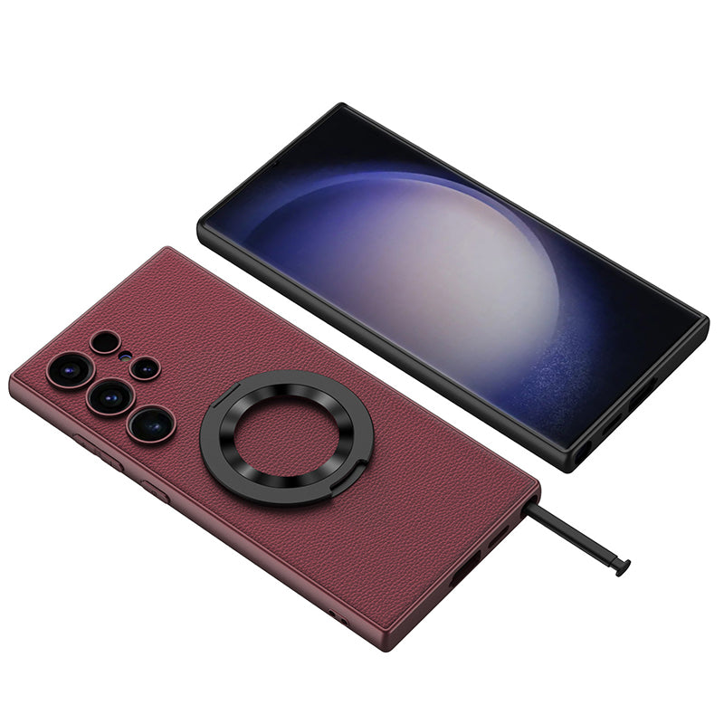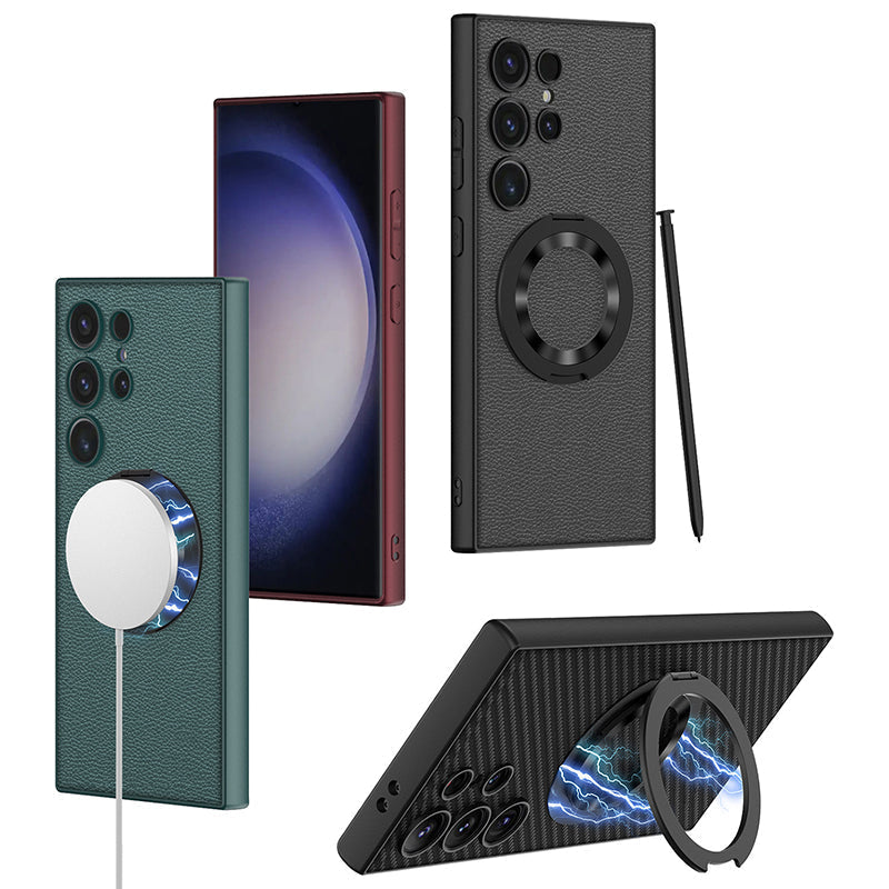 The lambskin case protects your Galaxy S24 Series from scratches, and the smooth leather gives you a delicate touch. The interior lining is made of soft microfiber to protect your phone, and the versatile magnetic holder with built-in magnets provides fast wireless charging. At the same time, it can also be used as a mobile phone stand to watch movies at any time.
