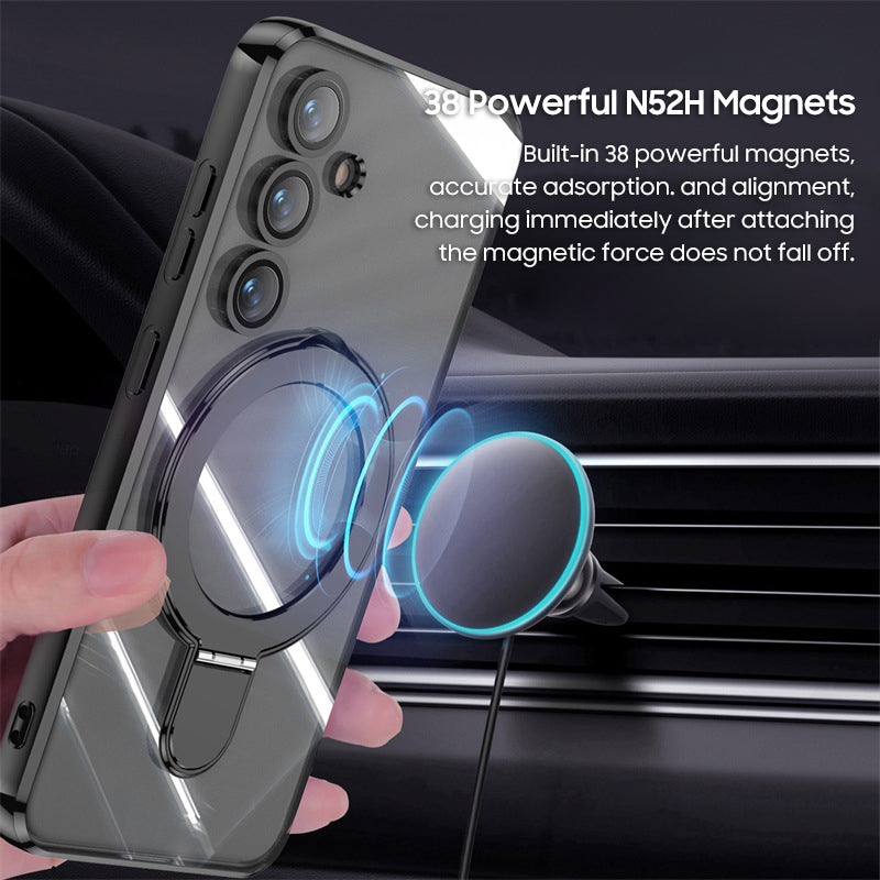 Samsung Magsafe Series | Transparent Electroplated Magnetic Ring Mobile Phone Case - onlinemegasale.com