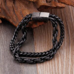 This bracelet’s premium stainless steel construction with tactical matte black finish maintains its appearance through work, workouts, and weekend projects without babysitting.
