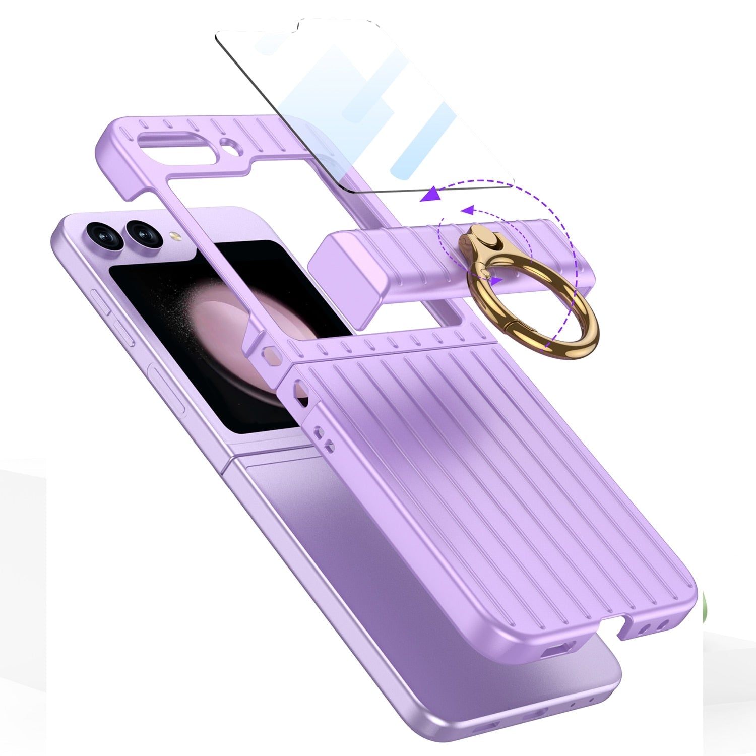 Enhance the style and protection of your Samsung Galaxy Z Flip with our sleek and durable galaxy z flip 5 case. Designed to fit your device perfectly, our Shockproof Case With Ring Bracket & Screen Protective offers reliable defense against scratches, bumps, and everyday wear and tear.