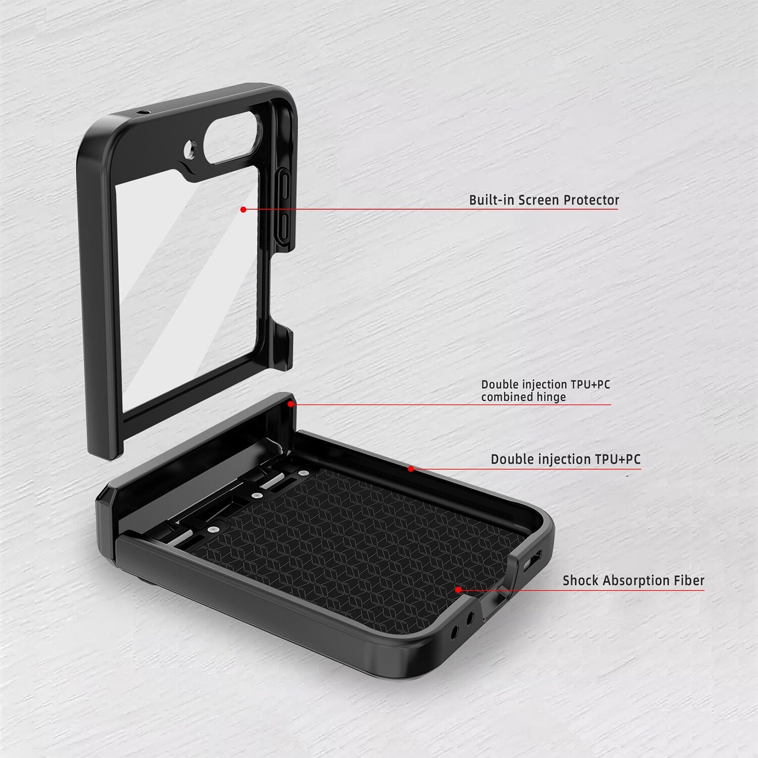 Enhance the style and protection of your Samsung Galaxy Z Flip with our sleek and durable galaxy z flip 5 case. Designed to fit your device perfectly, our Shockproof Hinge Protective Case offers reliable defense against scratches, bumps, and everyday wear and tear.