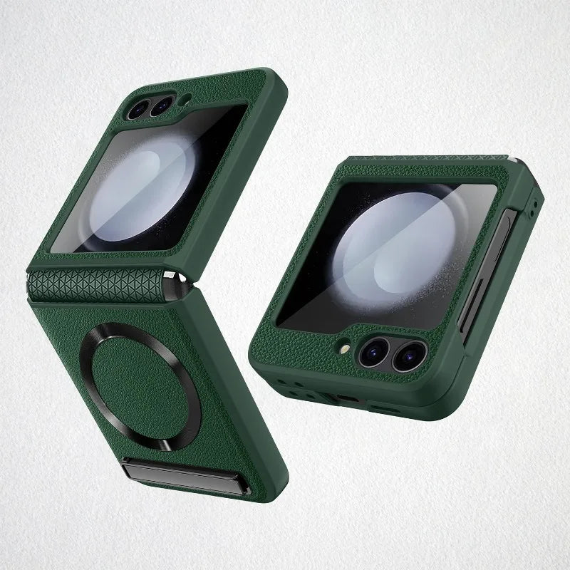 Upgrade the appearance and safeguard your Samsung Galaxy Z Flip with our sophisticated and resilient Galaxy Z Flip 6 case. Tailored to seamlessly fit your device, our Shockproof Leather Case with Magnetic Kickstand provides dependable protection against scratches, bumps, and daily use.