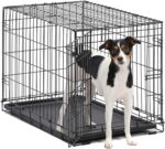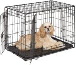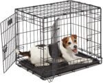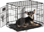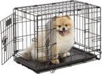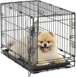 • XXS Double door folding dog crate ideal for “Toy” dog breeds w/ adult weight up to 6 pounds | Convenient divider panel allows the crate to expand as your dog grows | Crate measures 18L x 12W x 14H inches