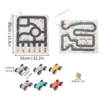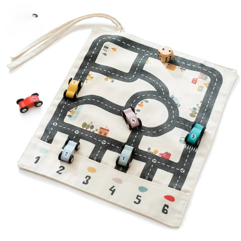 Every part of the SpeedRoll set is designed for little hands and big dreams. The sturdy wooden cars glide smoothly on the durable canvas track, crafted to withstand hours of play. It’s perfect for developing fine motor skills and teaching basic concepts of motion and speed in a way that’s captivating for children.