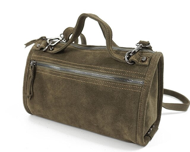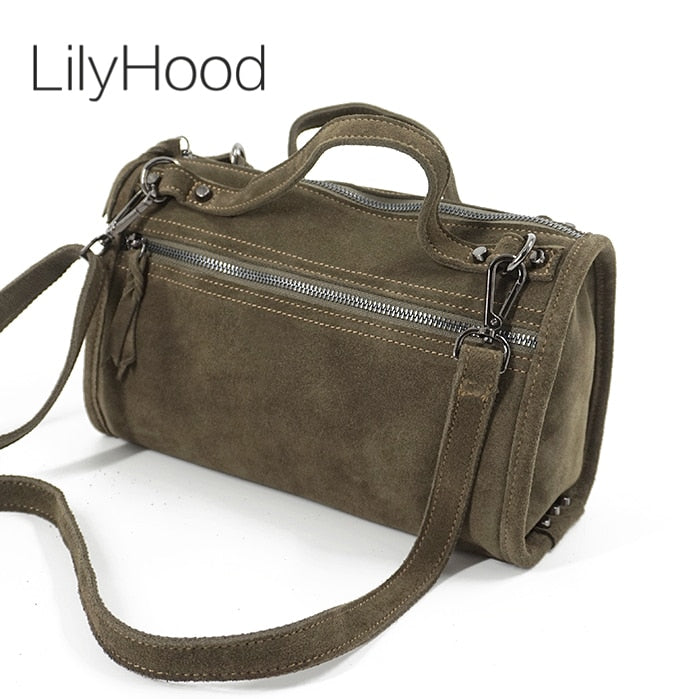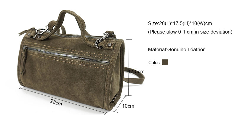 Suede Genuine Leather Rivet Shoulder Bag Crossbody Bag Shape: Boston – Handbags Type: Shoulder BagsTypes of bags: Shoulder & Crossbody Bags – Main Material: Genuine LeatherGenuine Leather Type: Cow Leather – Closure Type: ZipperHardness: SOFT – Style: CasualLining Material: Cotton – Occasion: VersatilePattern Type: Solid – Number of Handles/Straps: SingleInterior: Interior Zipper Pocket – Interior: Cell Phone Pocket…