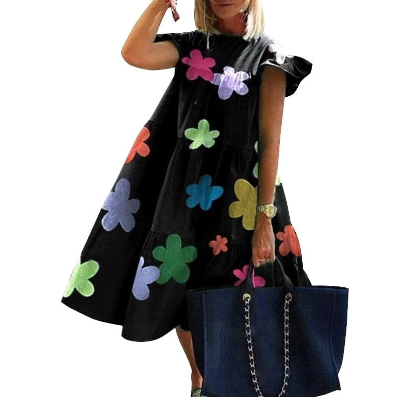 Summer Vintage Style Women’s Loose Round Neck Short Sleeve Dresses