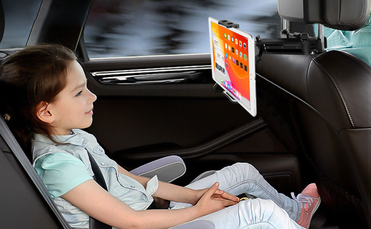 Telescopic Car Rear Phone/Tablet Holder for Kids, 360° Rotation, Compatible for ALL 4.7″-12.9″ Devices