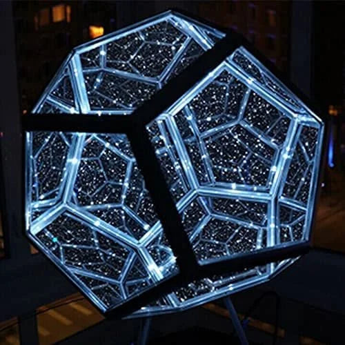 Infinite Dodecahedron uses the unique properties of light to give the viewer the feeling of staring into an endless abyss of geometry and color.