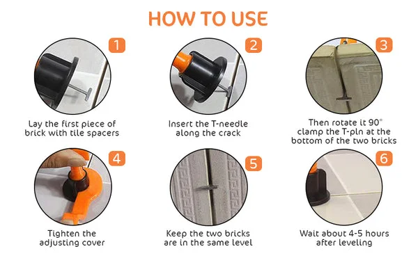 - When Tightening, It is Best to Rotate the T-needle Back and Forth a Few Turns to Make the Sorrounding Cement Reserve Some Space So That the Tile Leveling Set Can Be Easier Removed.