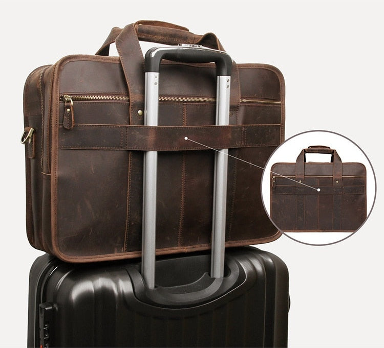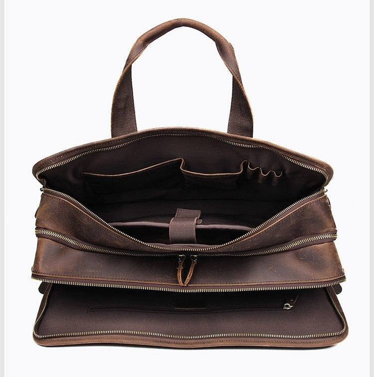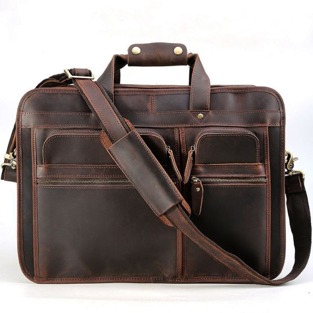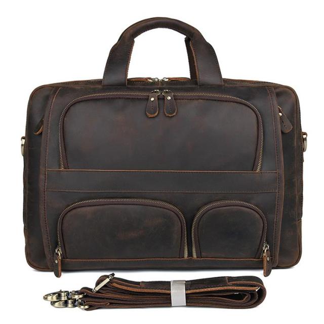Men Briefcase Genuine Leather Laptop Bag 15.6" Cowhide Male