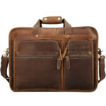 The BellabyDesign Top Quality Briefcase Bag For Men Male Business 17″ Executive Leather Briefcase is made of genuine leather and has a durable, stylish look. It features an interior compartment for your laptop, exterior slot pockets so you can access the essentials quickly, and a cell phone holder on the back panel — perfect for people who have to hold their mobile device in one arm while carrying all their essentials. On the other hand!