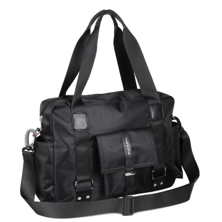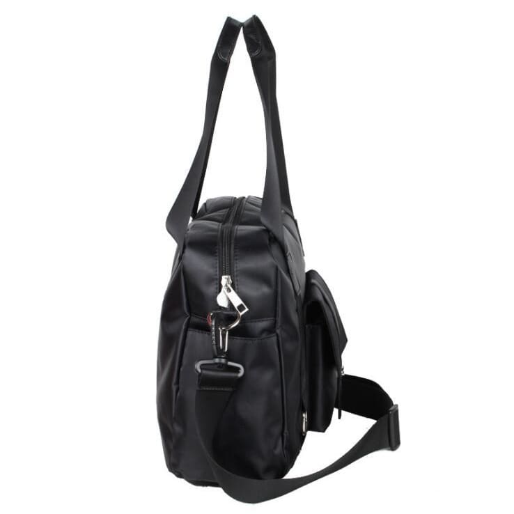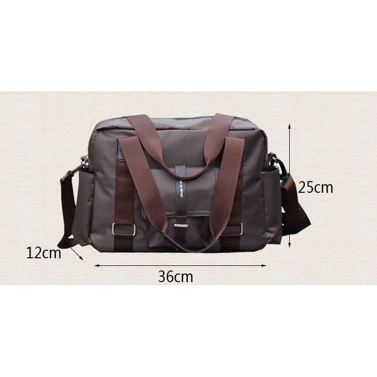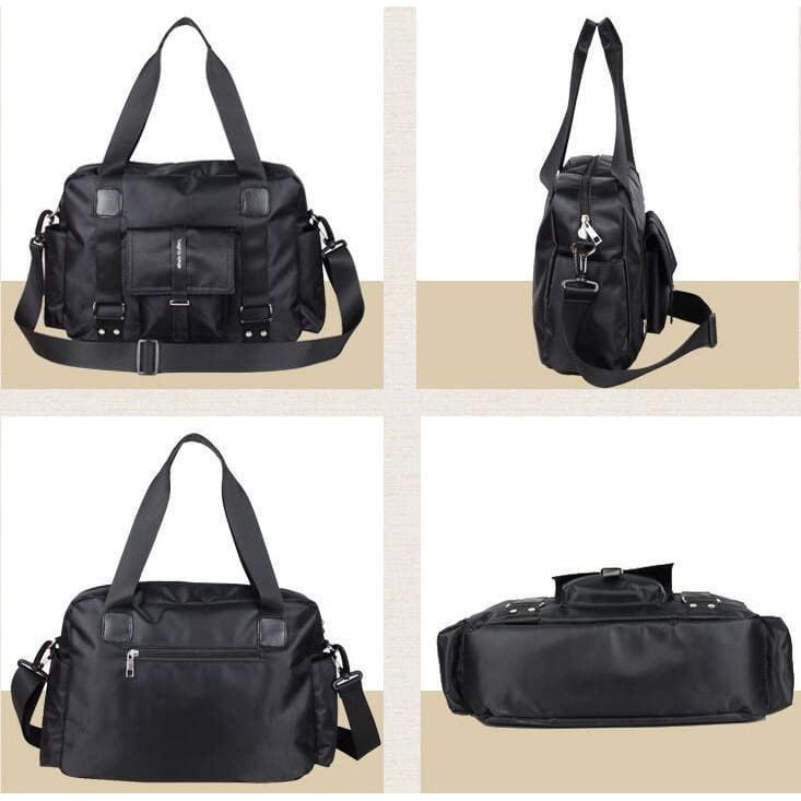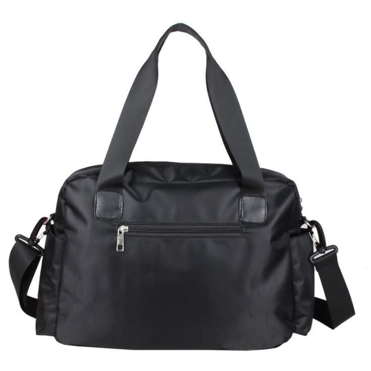 👍 This solid pattern travel bag will be the best bud on your short trip. It has a width of 25cm and a height of 12cm and lenght36cm. These measurements combine together will give you all the space you need to put your personal stuff and carry them with you everywhere. Its nylon composite materials make it last long depending on how you took care of it. Unisex and versatile is the kind of bag you will want on your side. Waterproof makes it even better