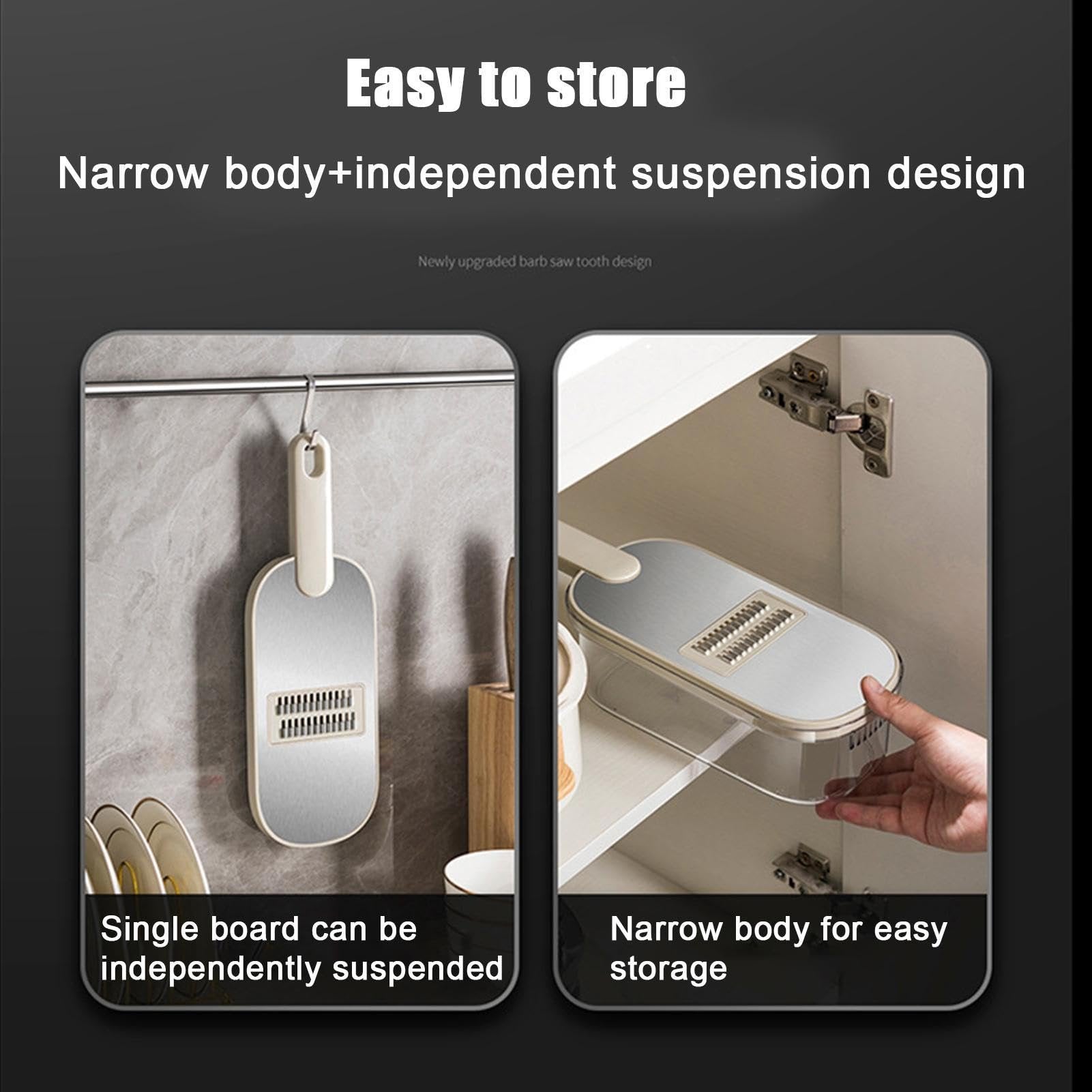 Convenient organization: our multifunctional vegetable slicer has a storage compartment with independent blades that can be easily replaced for hygiene. The unit has removable blades and can be hung up to dry.