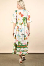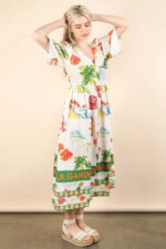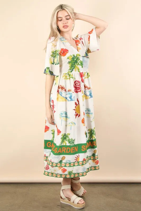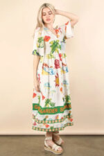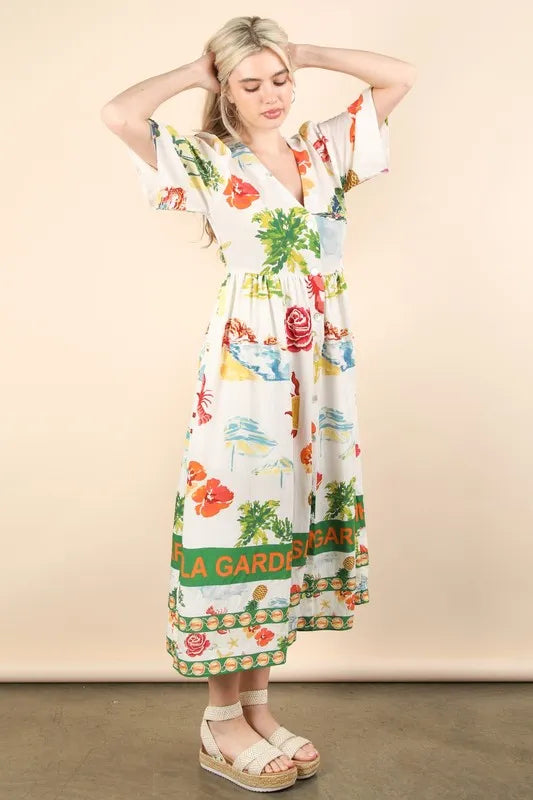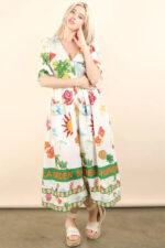 A button-down printed midi dress is a versatile and stylish piece featuring a mid-length hemline and a button-up front closure. The dress is adorned with a colorful or patterned print, adding a playful and fashionable touch to the design. Perfect for various occasions, this dress can be easily dressed up or down to suit different styles and preferences.