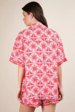 A tropical printed shirt top and shorts set is a stylish and coordinated outfit choice for warm weather. The vibrant print evokes a vacation-ready vibe, while the matching top and shorts create a cohesive and put-together look. This set is perfect for beach days, summer outings, or tropical getaways. Pair it with sandals and sunglasses for a trendy and effortless ensemble.